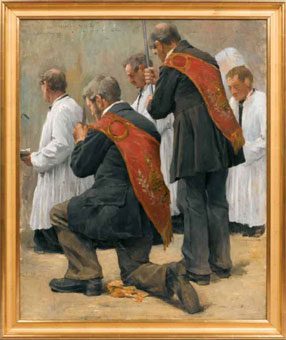 Au XVIIe siècle, Jean Eudes fonde les confréries du Saint-Sacrement à Paris, puis se rend en Normandie pour continuer sa mission. Ce mouvement relance la fondation de confréries de charité de la Province, qui s’adjoignent le culte du Saint Sacrement. Les bannières quittent alors leurs couleurs vertes ou violettes pour devenir rouges.